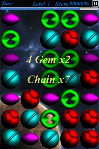 of screen to refill the gap. Score and time will gain by matching gems. To gain